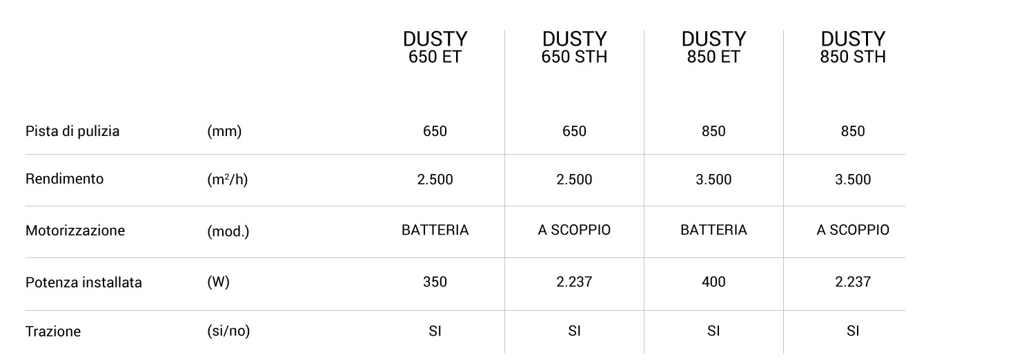 DUSTY 650 & 850 ET – STH – SPAZZATRICI MOTORIZZATE CON FILTRO A PANNELLO