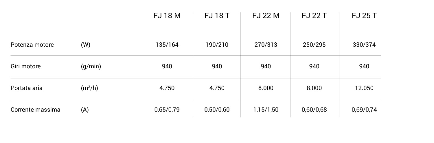 FJ 18 M – Monofase ,FJ 18 T – Trifase ,FJ 22 M – Monofase ,FJ 22 T – Trifase ,FJ 25 T – Trifase |